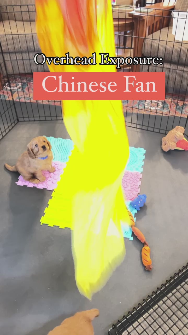 This soft, floating fan can create many different patterns of movement above puppies and kittens during curriculum time, giving your litters experience with items overhead. This builds resilience and opportunity for your young animals to become comfortable with unexpected or unusual movement from above. This item is not meant to come into contact with animals, keep out of their reach.